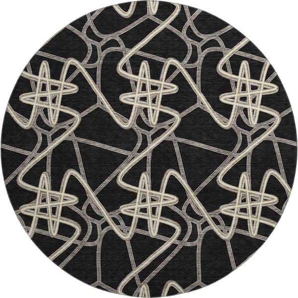 Mayfield Premium Machine Washable Abstract AMF947 Black 8 ft. x 8 ft. Round Rug