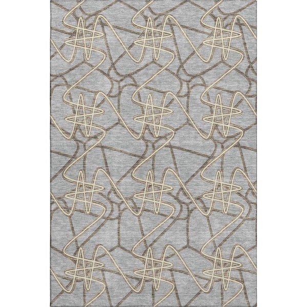 Mayfield Premium Machine Washable Abstract AMF947 Gray 3 ft. x 5 ft. Area Rug