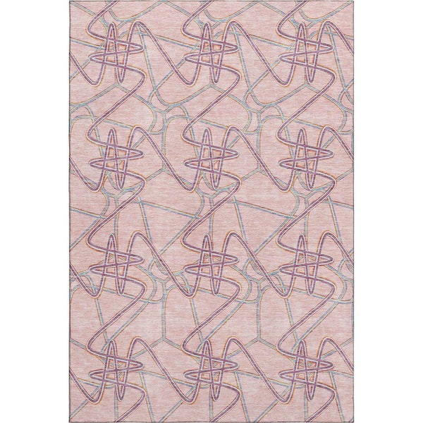 Mayfield Premium Machine Washable Abstract AMF947 Pink 10 ft. x 14 ft. Area Rug
