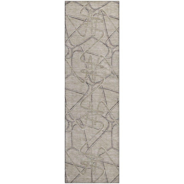 Mayfield Premium Machine Washable Abstract AMF947 Putty 2 ft. 3 in. x 7 ft. 6 in. Runner Rug