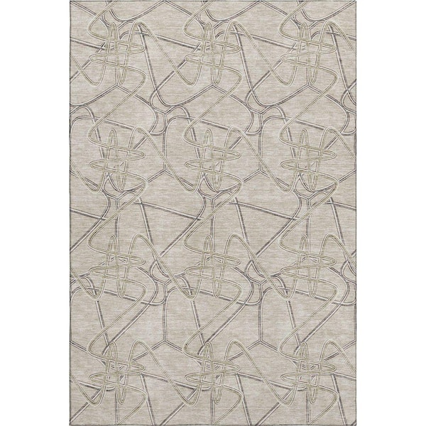 Mayfield Premium Machine Washable Abstract AMF947 Putty 8 ft. x 10 ft. Area Rug