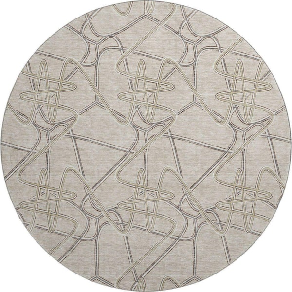 Mayfield Premium Machine Washable Abstract AMF947 Putty 8 ft. x 8 ft. Round Rug