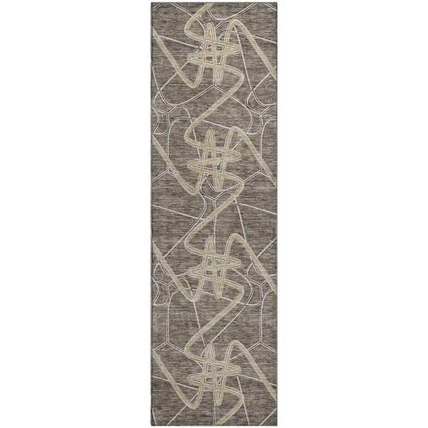 Mayfield Premium Machine Washable Abstract AMF947 Taupe 2 ft. 3 in. x 7 ft. 6 in. Runner Rug