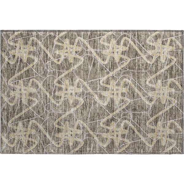 Mayfield Premium Machine Washable Abstract AMF947 Taupe 2 ft. x 3 ft. Area Rug