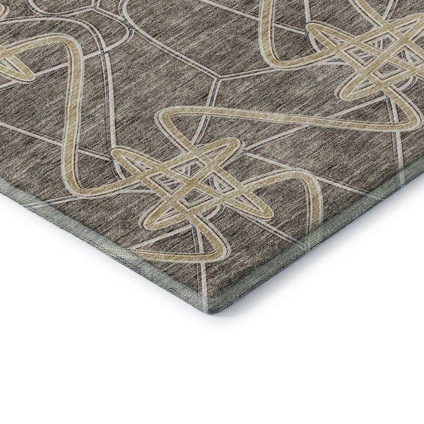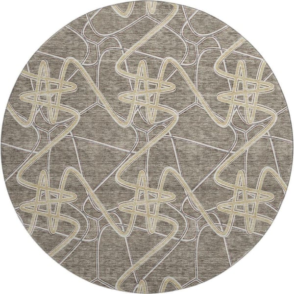 Mayfield Premium Machine Washable Abstract AMF947 Taupe 8 ft. x 8 ft. Round Rug