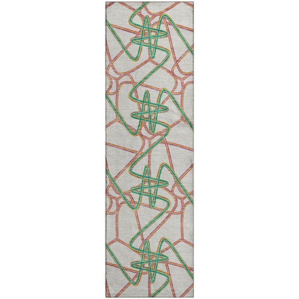 Mayfield Premium Machine Washable Abstract AMF947 White 2 ft. 3 in. x 7 ft. 6 in. Runner Rug