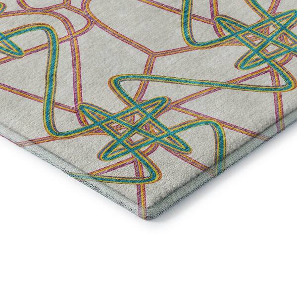 Mayfield Premium Machine Washable Abstract AMF947 White 8 ft. x 8 ft. Round Rug