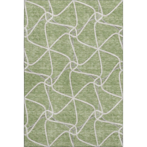 Mayfield Premium Machine Washable Abstract AMF948 Aloe 8 ft. x 10 ft. Area Rug