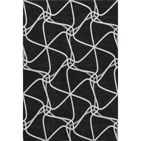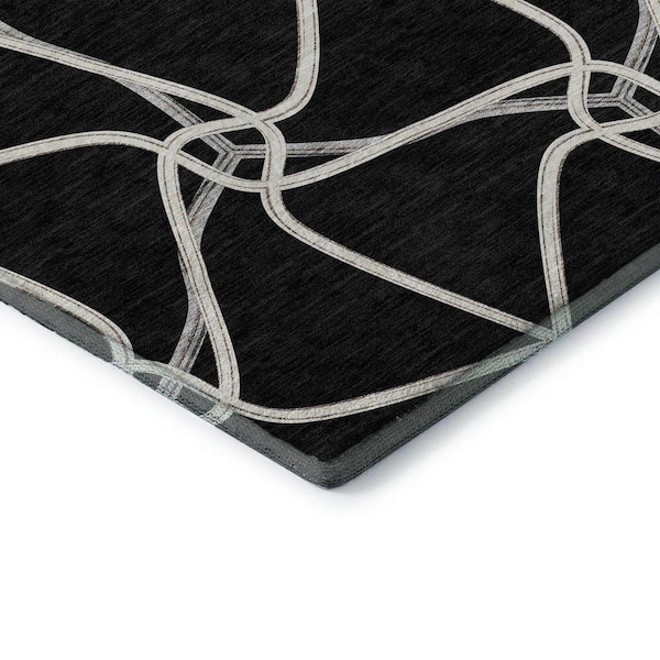 Mayfield Premium Machine Washable Abstract AMF948 Black 8 ft. x 10 ft. Area Rug