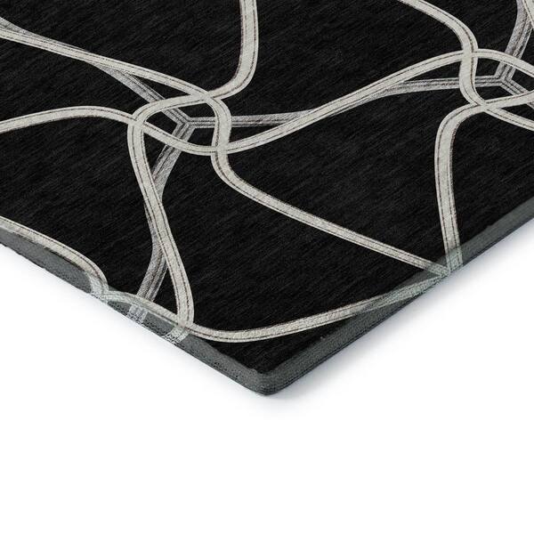Mayfield Premium Machine Washable Abstract AMF948 Black 8 ft. x 8 ft. Round Rug