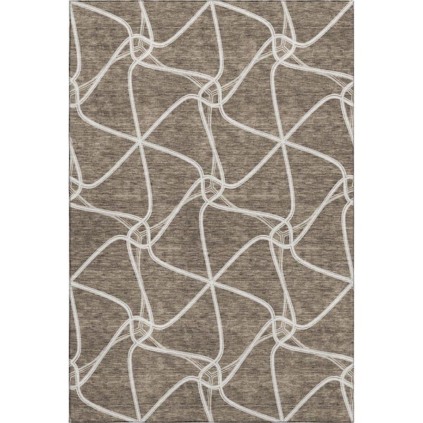 Mayfield Premium Machine Washable Abstract AMF948 Brown 5 ft. x 7 ft. 6 in. Area Rug