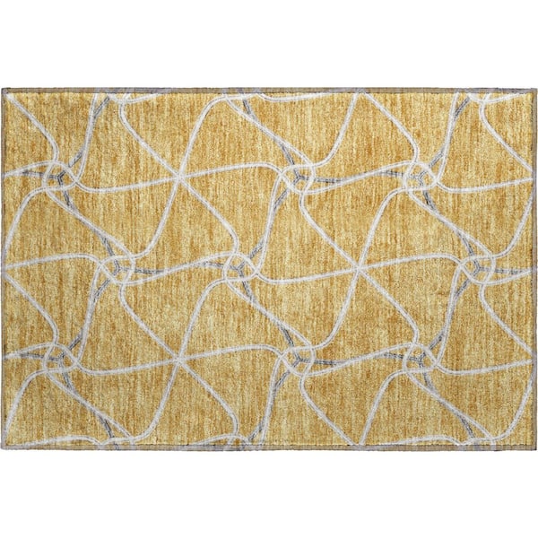 Mayfield Premium Machine Washable Abstract AMF948 Gold 2 ft. x 3 ft. Area Rug