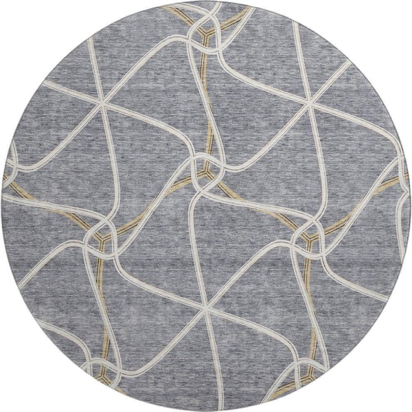 Mayfield Premium Machine Washable Abstract AMF948 Gray 8 ft. x 8 ft. Round Rug
