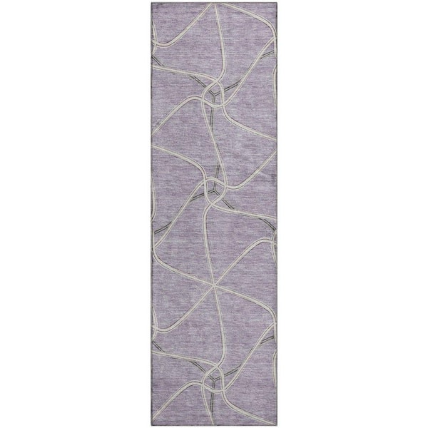 Mayfield Premium Machine Washable Abstract AMF948 Lavender 2 ft. 3 in. x 7 ft. 6 in. Runner Rug