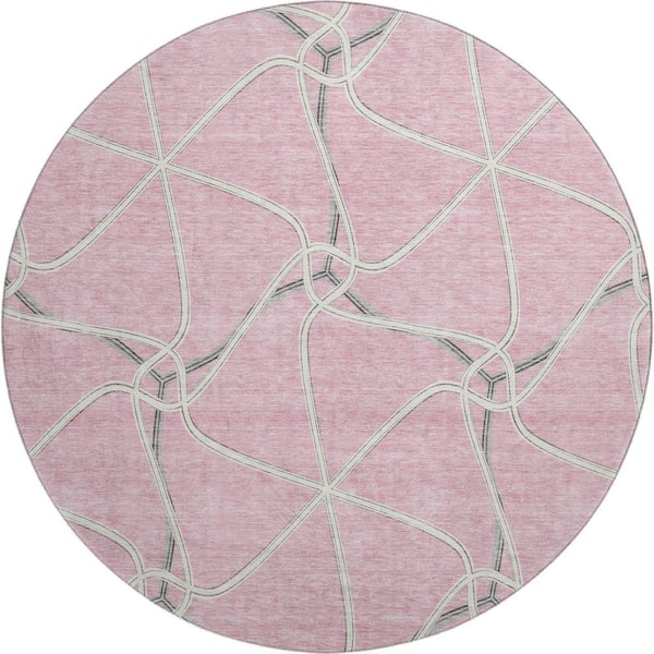 Mayfield Premium Machine Washable Abstract AMF948 Pink 8 ft. x 8 ft. Round Rug