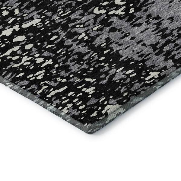 Mayfield Premium Machine Washable Abstract AMF949 Black 8 ft. x 8 ft. Round Rug
