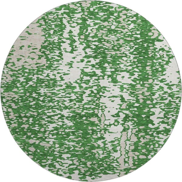 Mayfield Premium Machine Washable Abstract AMF949 Emerald 8 ft. x 8 ft. Round Rug