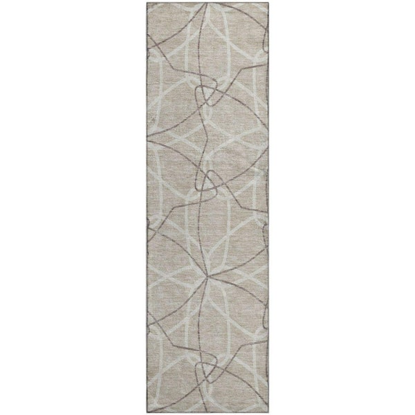 Mayfield Premium Machine Washable Abstract AMF950 Beige 2 ft. 3 in. x 7 ft. 6 in. Runner Rug