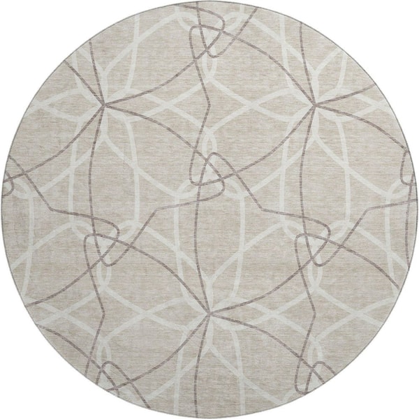 Mayfield Premium Machine Washable Abstract AMF950 Beige 8 ft. x 8 ft. Round Rug