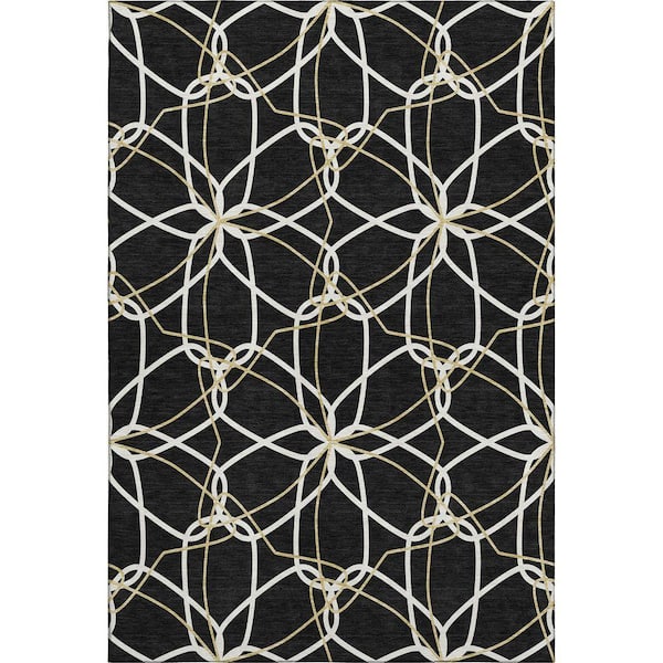 Mayfield Premium Machine Washable Abstract AMF950 Black 8 ft. x 10 ft. Area Rug