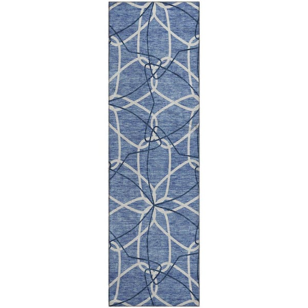 Mayfield Premium Machine Washable Abstract AMF950 Denim 2 ft. 3 in. x 7 ft. 6 in. Runner Rug