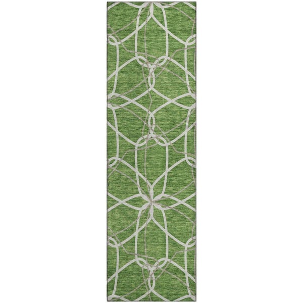 Mayfield Premium Machine Washable Abstract AMF950 Green 2 ft. 3 in. x 7 ft. 6 in. Runner Rug