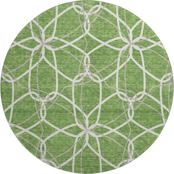 Mayfield Premium Machine Washable Abstract AMF950 Green 8 ft. x 8 ft. Round Rug