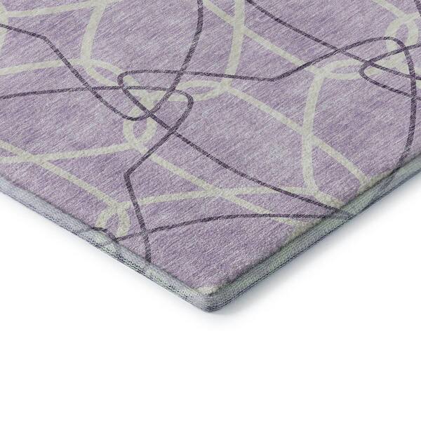 Mayfield Premium Machine Washable Abstract AMF950 Lavender 8 ft. x 8 ft. Round Rug