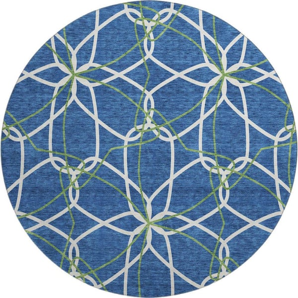 Mayfield Premium Machine Washable Abstract AMF950 Navy 8 ft. x 8 ft. Round Rug