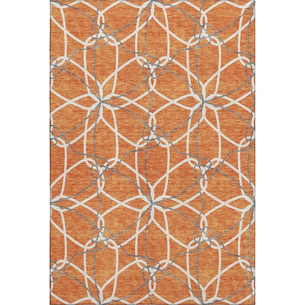 Mayfield Premium Machine Washable Abstract AMF950 Orange 3 ft. x 4 ft. Area Rug