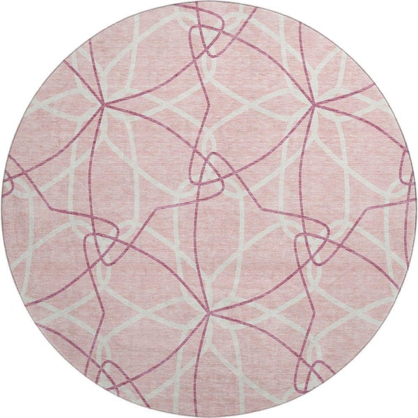 Mayfield Premium Machine Washable Abstract AMF950 Pink 8 ft. x 8 ft. Round Rug