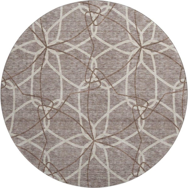 Mayfield Premium Machine Washable Abstract AMF950 Taupe 8 ft. x 8 ft. Round Rug