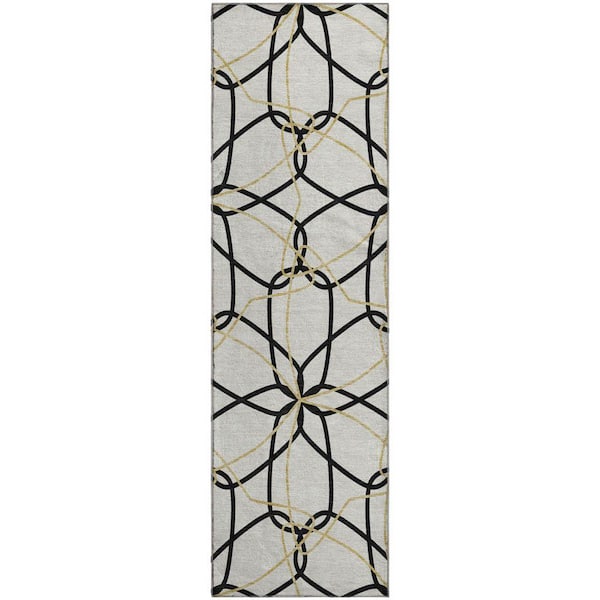 Mayfield Premium Machine Washable Abstract AMF950 White 2 ft. 3 in. x 7 ft. 6 in. Runner Rug