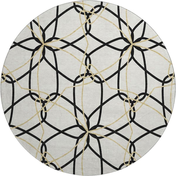 Mayfield Premium Machine Washable Abstract AMF950 White 8 ft. x 8 ft. Round Rug