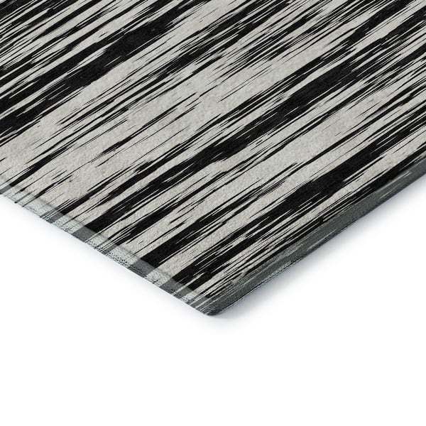 Mayfield Premium Machine Washable Abstract AMF951 Black 8 ft. x 8 ft. Round Rug