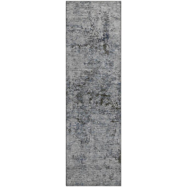 Mayfield Premium Machine Washable Abstract AMF953 Gray 2 ft. 3 in. x 7 ft. 6 in. Runner Rug
