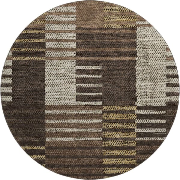 Mayfield Premium Machine Washable Abstract AMF954 Chocolate 8 ft. x 8 ft. Round Rug