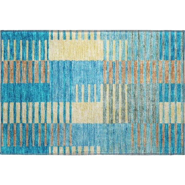 Mayfield Premium Machine Washable Abstract AMF954 Teal 2 ft. x 3 ft. Area Rug