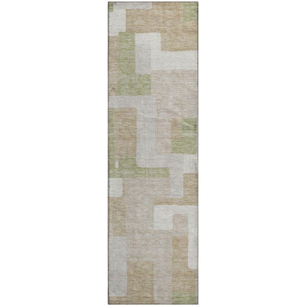 Mayfield Premium Machine Washable Abstract AMF955 Beige 2 ft. 3 in. x 7 ft. 6 in. Runner Rug