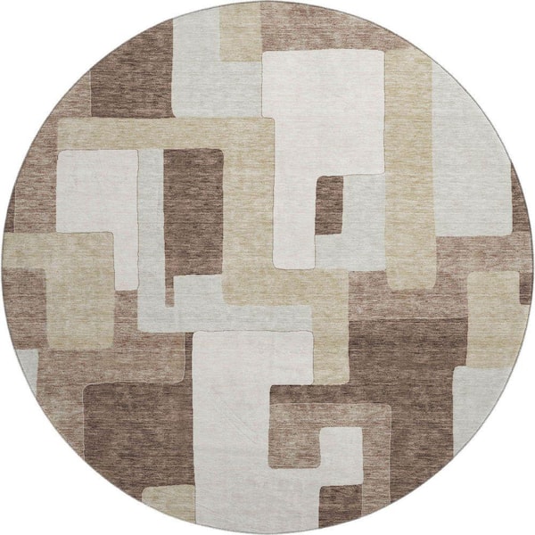 Mayfield Premium Machine Washable Abstract AMF955 Brown 8 ft. x 8 ft. Round Rug