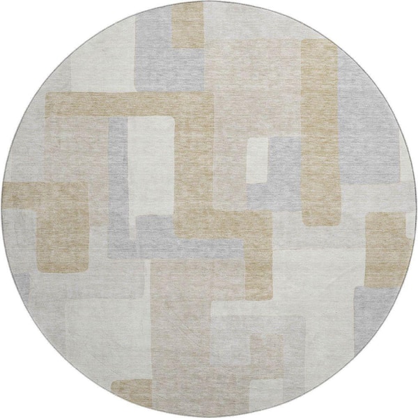 Mayfield Premium Machine Washable Abstract AMF955 Ivory 8 ft. x 8 ft. Round Rug