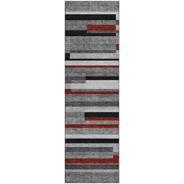 Mayfield Premium Machine Washable Abstract AMF956 Gray 2 ft. 3 in. x 7 ft. 6 in. Runner Rug