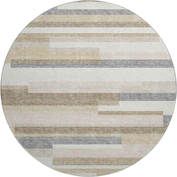 Mayfield Premium Machine Washable Abstract AMF956 Ivory 8 ft. x 8 ft. Round Rug