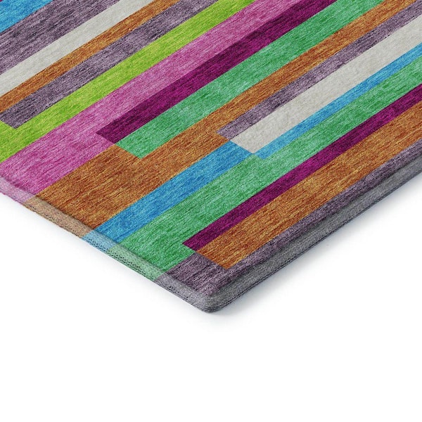 Mayfield Premium Machine Washable Abstract AMF956 Lavender 8 ft. x 8 ft. Round Rug