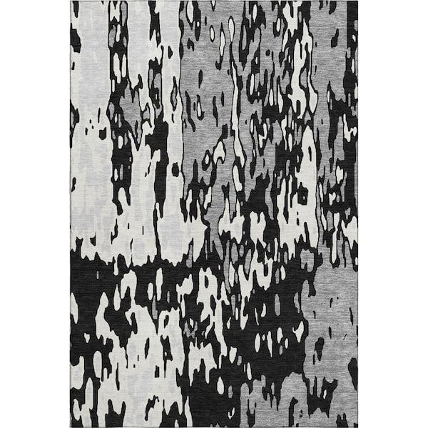 Mayfield Premium Machine Washable Abstract AMF957 Black 5 ft. x 7 ft. 6 in. Area Rug