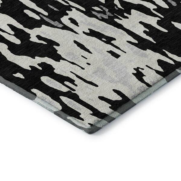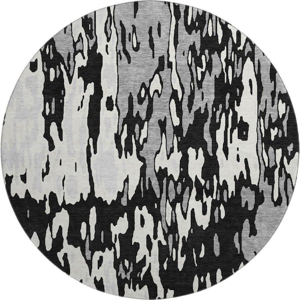 Mayfield Premium Machine Washable Abstract AMF957 Black 8 ft. x 8 ft. Round Rug