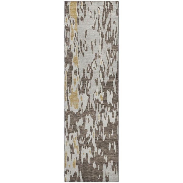 Mayfield Premium Machine Washable Abstract AMF957 Brown 2 ft. 3 in. x 7 ft. 6 in. Runner Rug