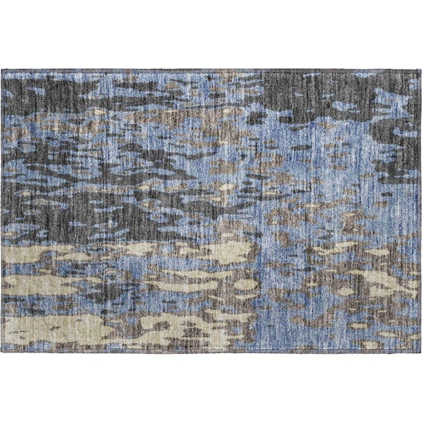 Mayfield Premium Machine Washable Abstract AMF957 Denim 1 ft. 8 in. x 2 ft. 6 in. Area Rug