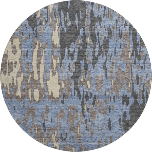 Mayfield Premium Machine Washable Abstract AMF957 Denim 8 ft. x 8 ft. Round Rug