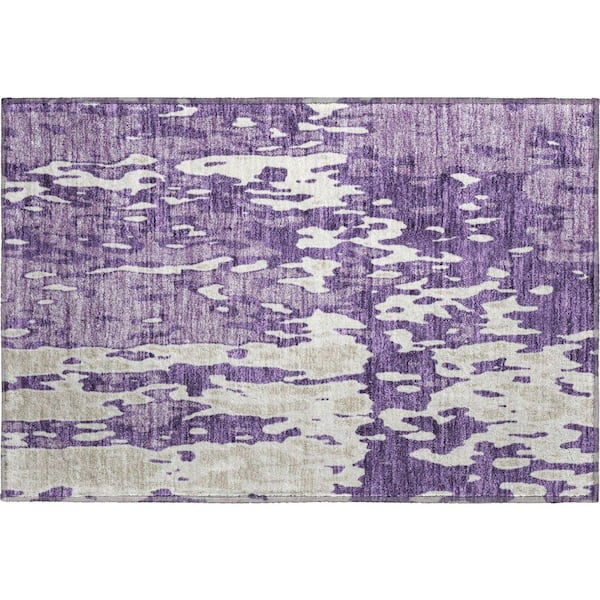 Mayfield Premium Machine Washable Abstract AMF957 Purple 1 ft. 8 in. x 2 ft. 6 in. Area Rug